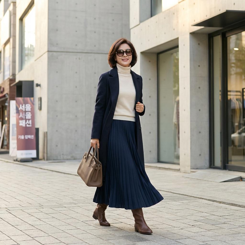 나이가 들면서 변하는 내 모습에 속상해하기보다, 지금의 나를 가장 아름답게 표현하는 방법을 찾는 것이 중요합니다. 롱스커트와 앵클부츠 조합으로 숨겨져 있던 우아함을 꺼내보세요.