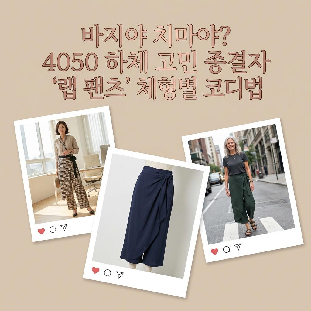 최근 포스티 거래액 144% 급증! 4050 여성의 하체 고민을 해결할 랩 스커트 팬츠를 소개합니다. Y존과 엉덩이 라인을 자연스럽게 가려주어 체형 보정에 탁월하며, 르베이지부터 구호까지 브랜드별 특징과 코디법을 정리해 드립니다.