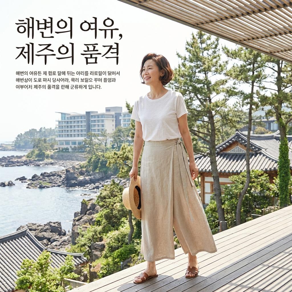 여름철에는 고급스러운 린넨 랩 팬츠 추천 리스트를 눈여겨보세요. 자칫 부해 보일 수 있는 린넨 소재도 랩 디자인과 만나면 시선이 분산되어 훨씬 날씬해 보입니다. 베이지나 네이비 같은 무채색 톤온톤 코디를 추천합니다.