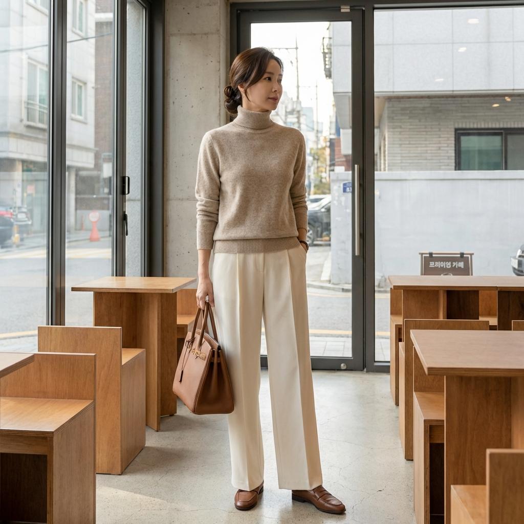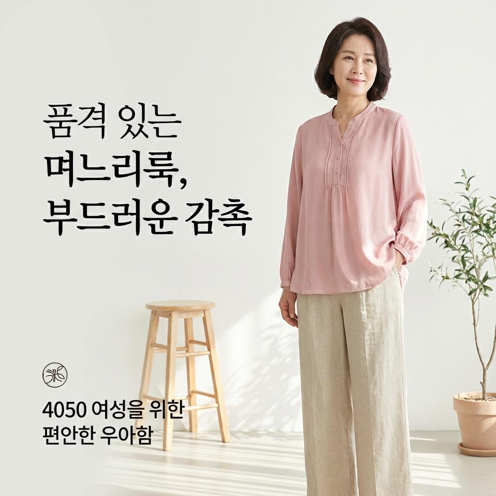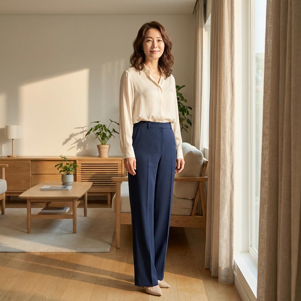 장점 단점 유행을 타지 않아 오래 입을 수 있음 소재가 좋을수록 가격대가 높아짐 어떤 자리에나 어울리는 고급스러움 자칫 단조로워 보일 수 있음 단정하고 신뢰감 있는 인상 연출 코디에 따라 나이 들어 보일 수 있음 1. 4060 세련된 며느리룩 코디의 핵심