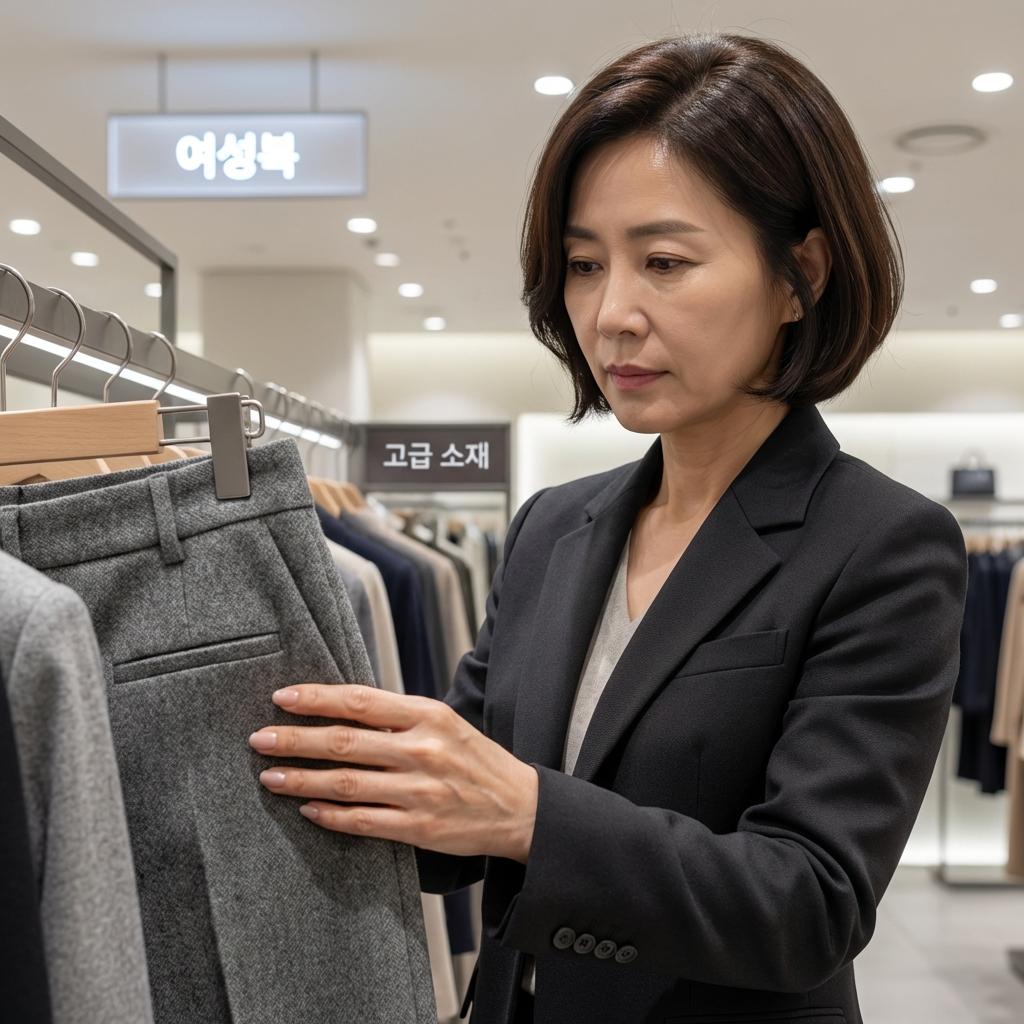 매번 수십만 원대의 50대 여성 슬랙스 브랜드 제품만 살 수는 없죠. 백화점 아울렛 브랜드인 지컷(G-CUT)이나 구호플러스에서 소재감을 꼼꼼히 따져 고르면 합리적인 가격에 명품 못지않은 핏을 찾을 수 있습니다. 광택이 너무 심하지 않고 복원력이 좋은 스판 혼방 소재를 추천합니다.