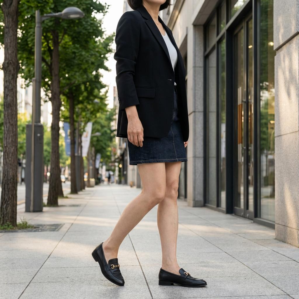 신발은 패션의 마침표입니다. 운동화도 좋지만, 가끔은 클래식한 가죽 로퍼를 매치해 보세요. 블랙 자켓과 청바지 조합에 로퍼 하나만 더해져도 '신경 써서 입은 듯한' 느낌을 줍니다. 발등을 적당히 덮는 디자인은 안정감을 주며 장시간 걸어도 편안합니다.