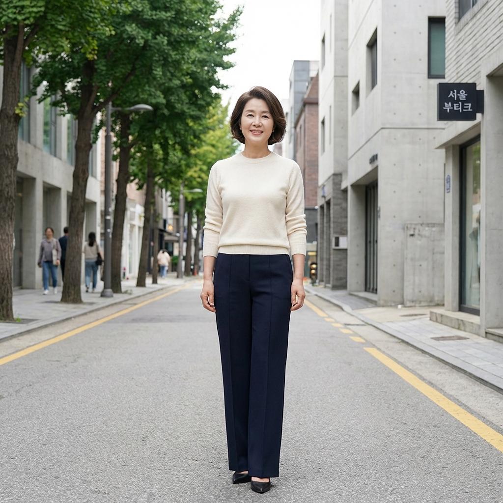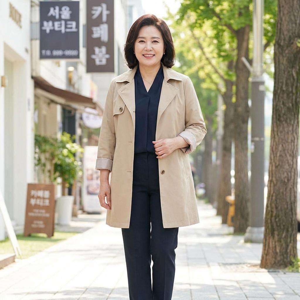 봄철에는 엉덩이를 살짝 덮는 기장의 트렌치코트나 사파리 자켓이 유용합니다. 이때 소매를 한두 번 걷어 올려 손목을 노출해 보세요. 가장 얇은 신체 부위를 보여주는 것만으로도 전체적인 인상이 훨씬 가벼워집니다. 이것이 진정한 키작고 통통한 50대 코디 의 핵심입니다.