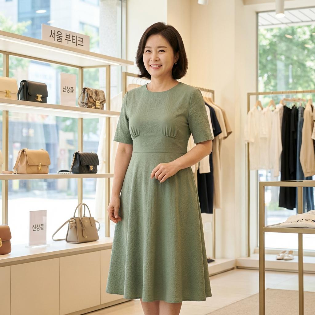 원피스를 고를 때는 허리선이 가슴 바로 아래에 있는 엠파이어 라인이나, 살짝 A라인으로 퍼지는 실루엣이 좋습니다. 너무 얇은 저지 소재보다는 힘 있는 코튼이나 혼방 소재가 뱃살을 안정적으로 눌러줍니다. 60대 엄마 옷 선물 로도 이런 체형 보완 원피스는 늘 환영받는 아이템입니다.